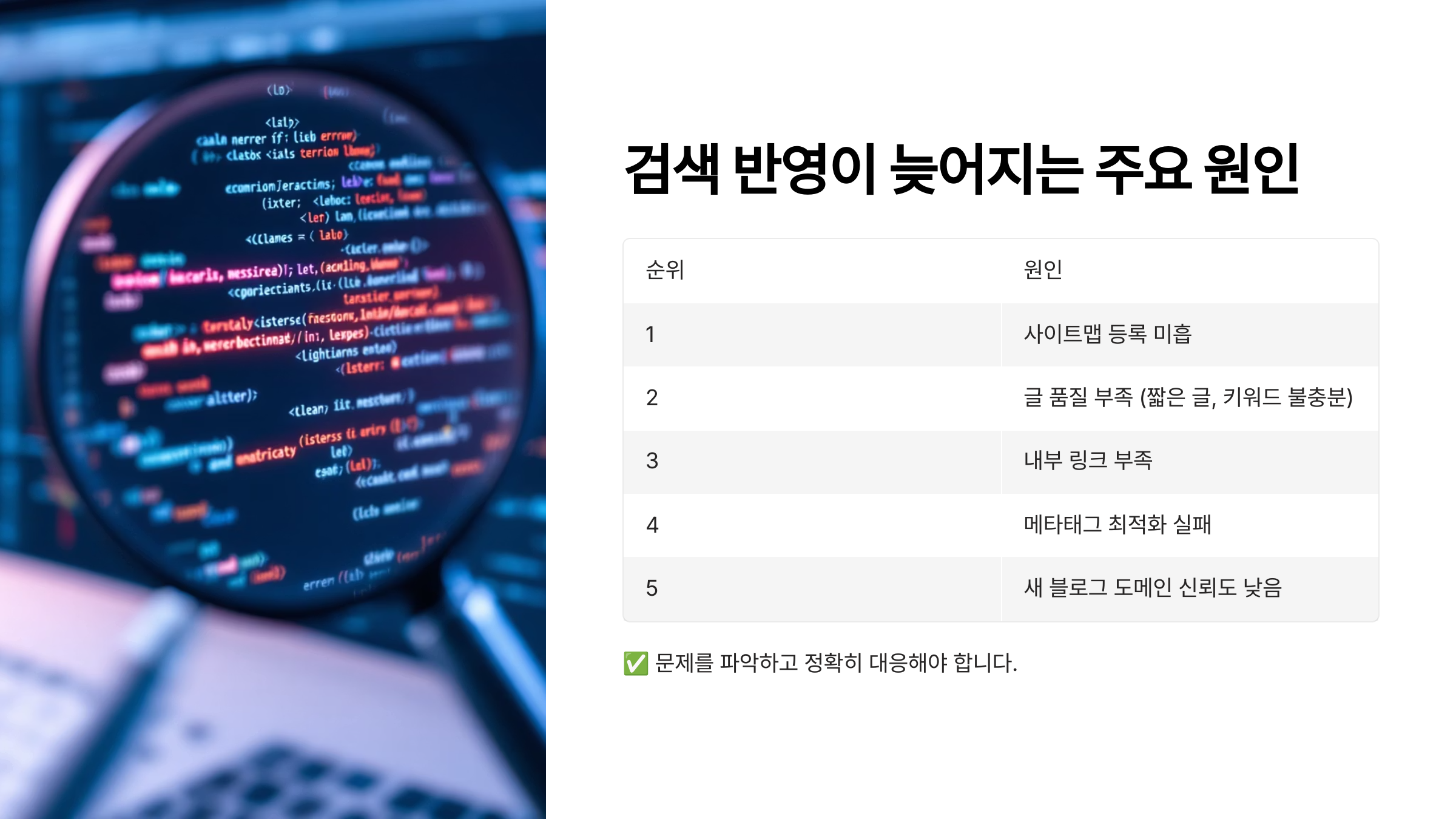 티스토리 글을 썼는데 검색 반영이 늦어 고민이신가요? 초보부터 중급 블로거까지 꼭 알아야 할, 글 작성 후 검색 반영 속도를 빠르게 만드는 최신 방법을 정리했습니다.