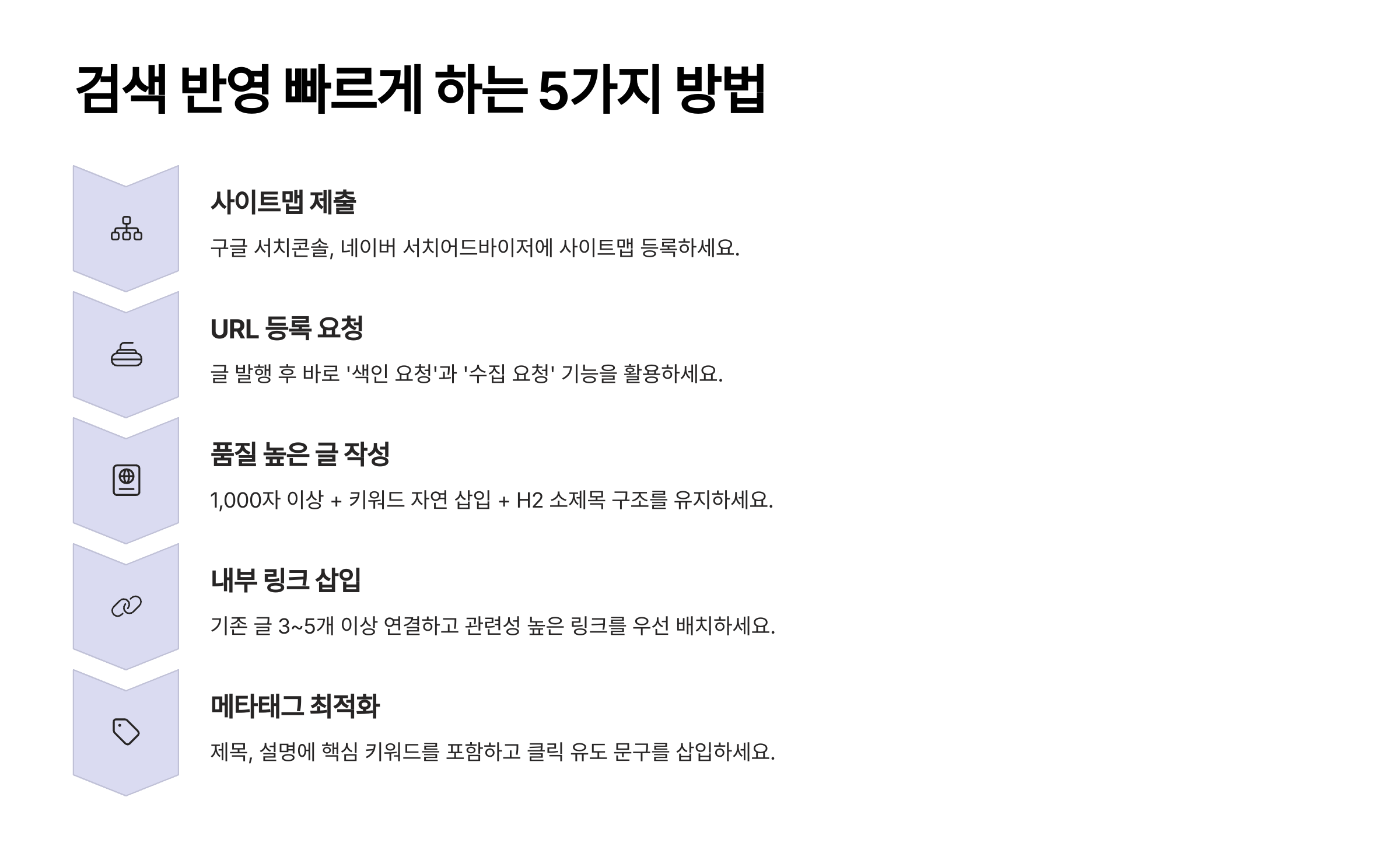 👉 글을 올리자마자 검색 반영 속도를 높이는 게 핵심입니다.
