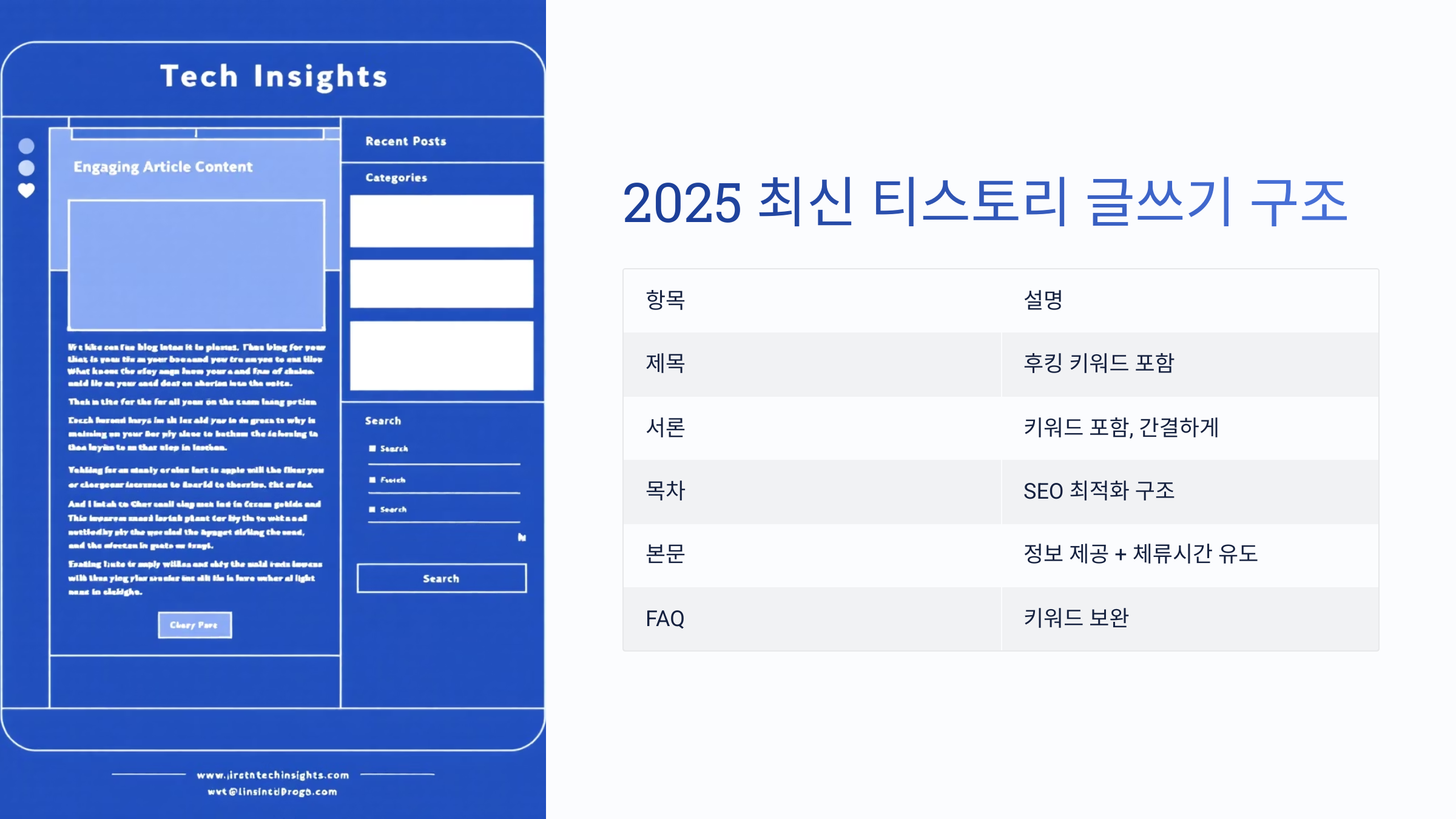 티스토리 초보 블로거라면 반드시 알아야 할, 검색 유입을 폭발적으로 늘리는 최신 글쓰기 구조를 소개합니다.
