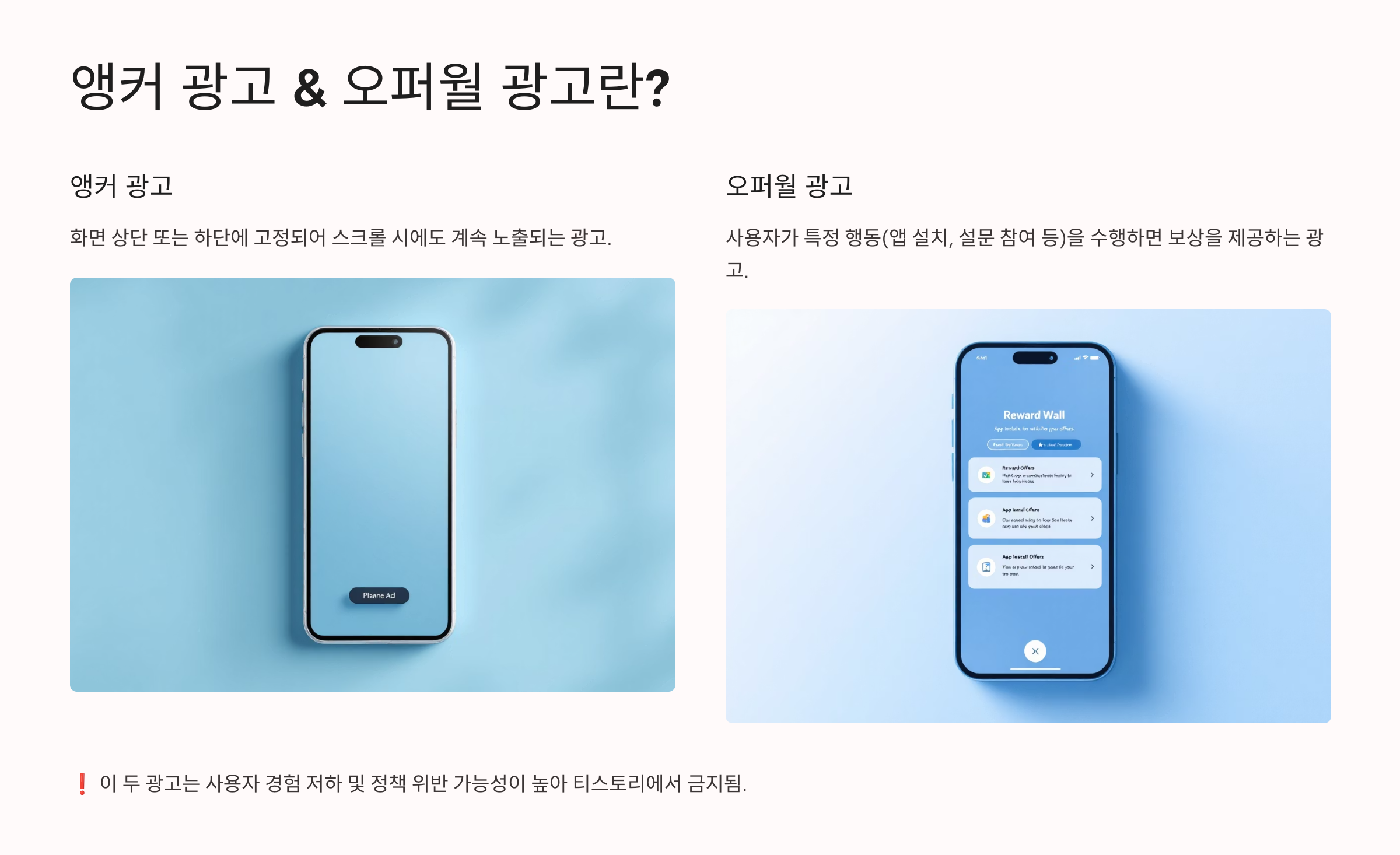 ❗ 이 두 광고는 사용자 경험 저하 및 정책 위반 가능성이 높아 티스토리에서 금지됨.