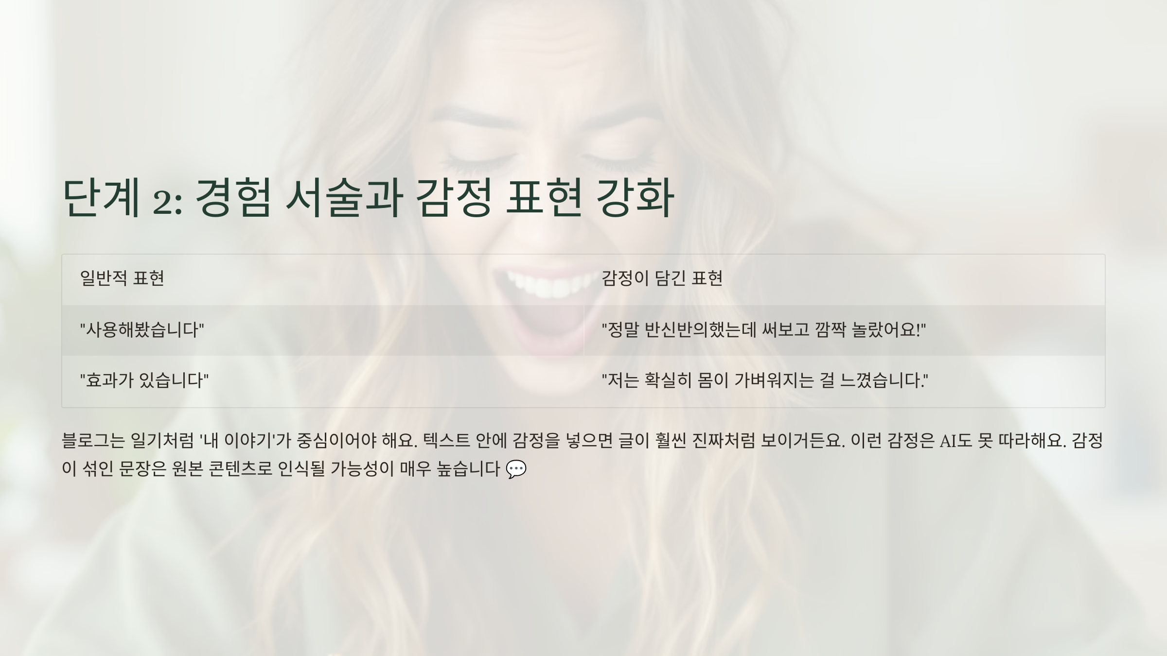 이런 감정은 AI도 못 따라해요. 감정이 섞인 문장은 원본 콘텐츠로 인식될 가능성이 매우 높습니다 💬