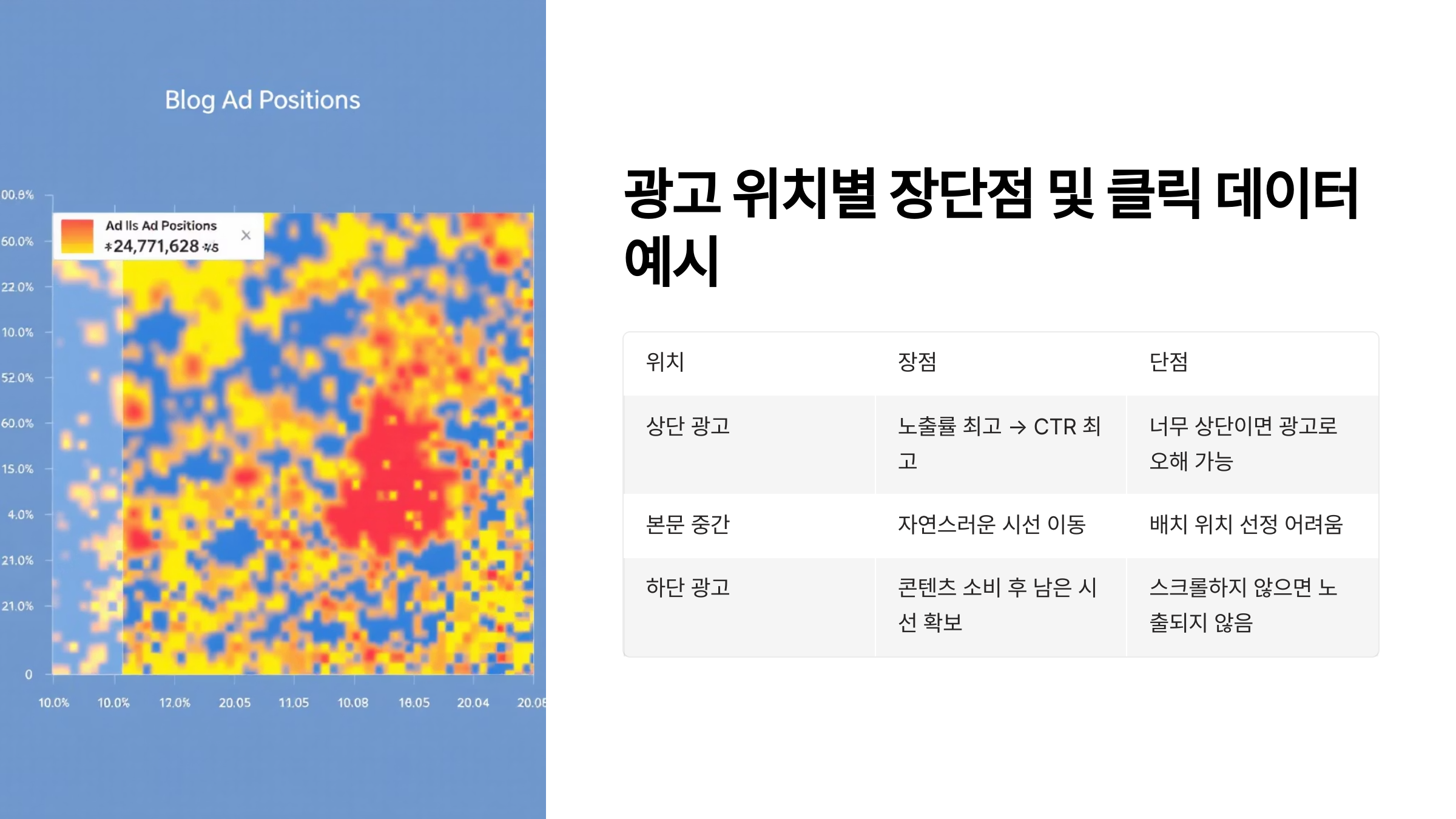 - 광고 위치별 장단점 및 클릭 데이터 예시