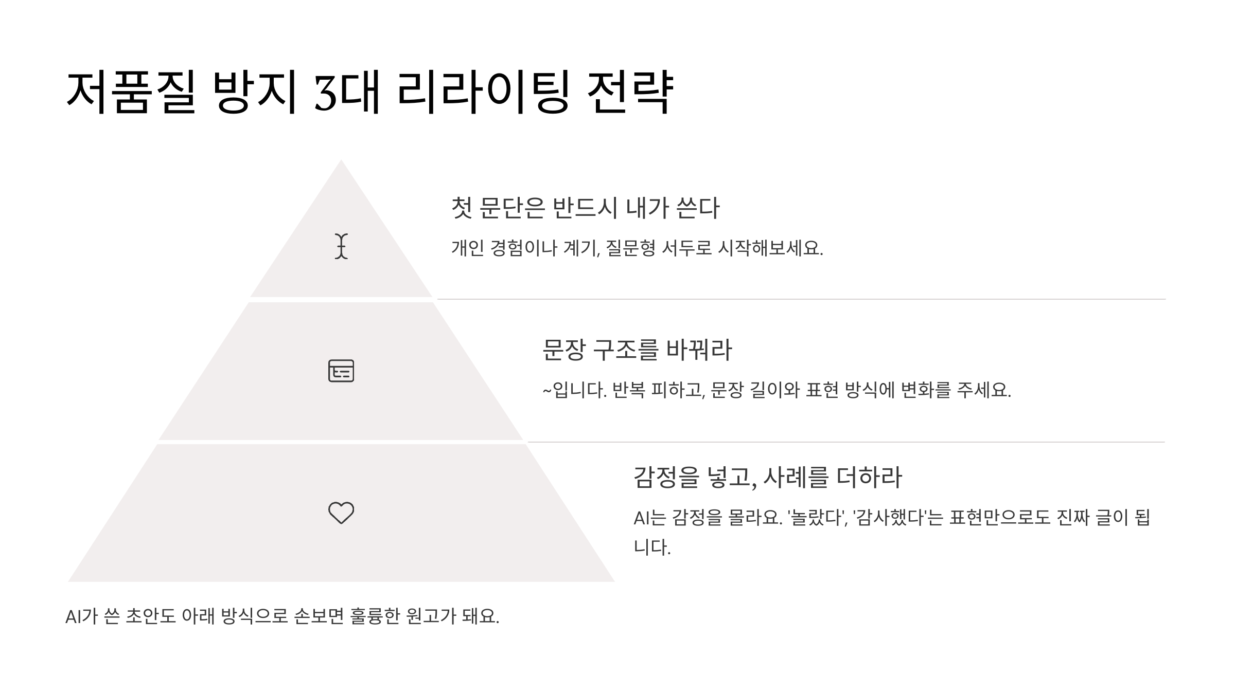AI가 쓴 초안도 아래 방식으로 손보면 훌륭한 원고가 돼요.