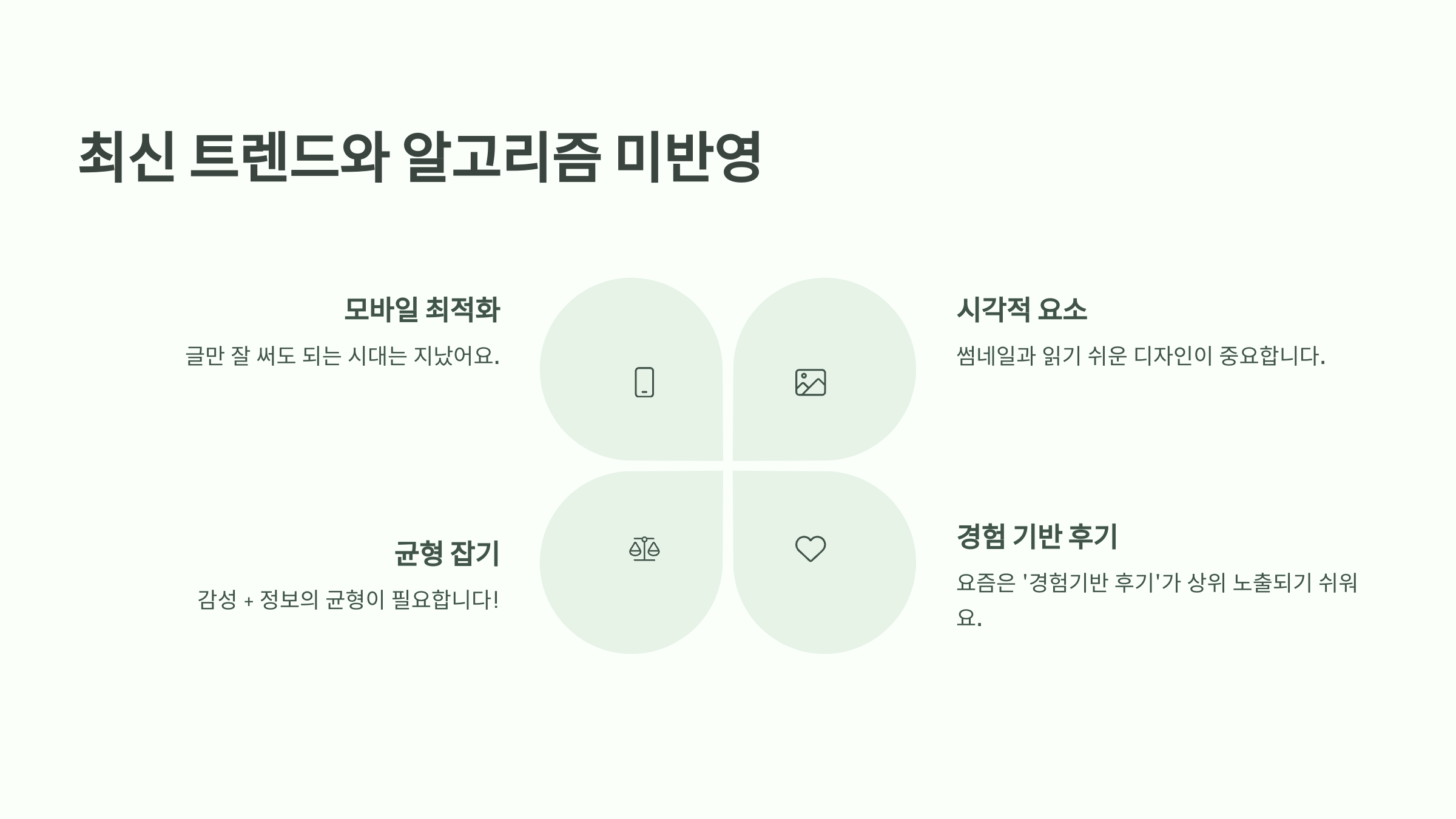네이버 알고리즘, 유튜브랑 비슷해졌다는 말 들어보셨죠? 글만 잘 써도 되는 시대는 지났어요. 썸네일, 모바일 최적화, 문단 간격, 읽기 쉬운 디자인까지 다 봅니다. 그리고 요즘은 ‘경험기반 후기’가 상위 노출되기 쉬워요. 너무 정보형 글만 고집하지 말고, 나만의 감정을 담은 후기를 섞어보세요. 감성 + 정보의 균형이 필요합니다!