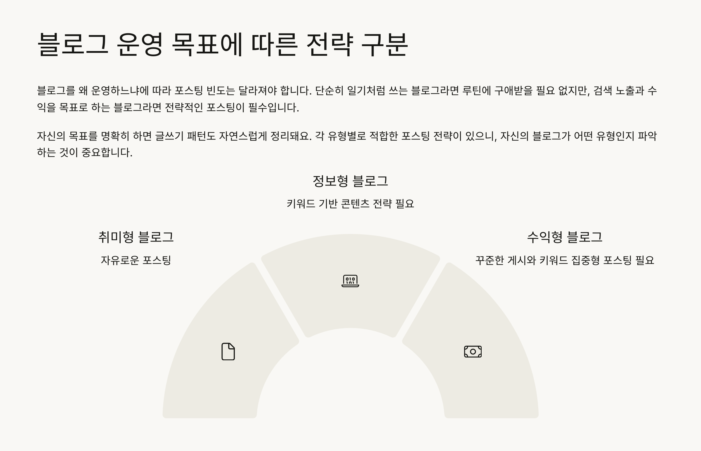 블로그를 왜 운영하느냐에 따라 포스팅 빈도는 달라져야 합니다. 단순히 일기처럼 쓰는 블로그라면 루틴에 구애받을 필요 없지만, 검색 노출과 수익을 목표로 하는 블로그라면 전략적인 포스팅이 필수입니다.