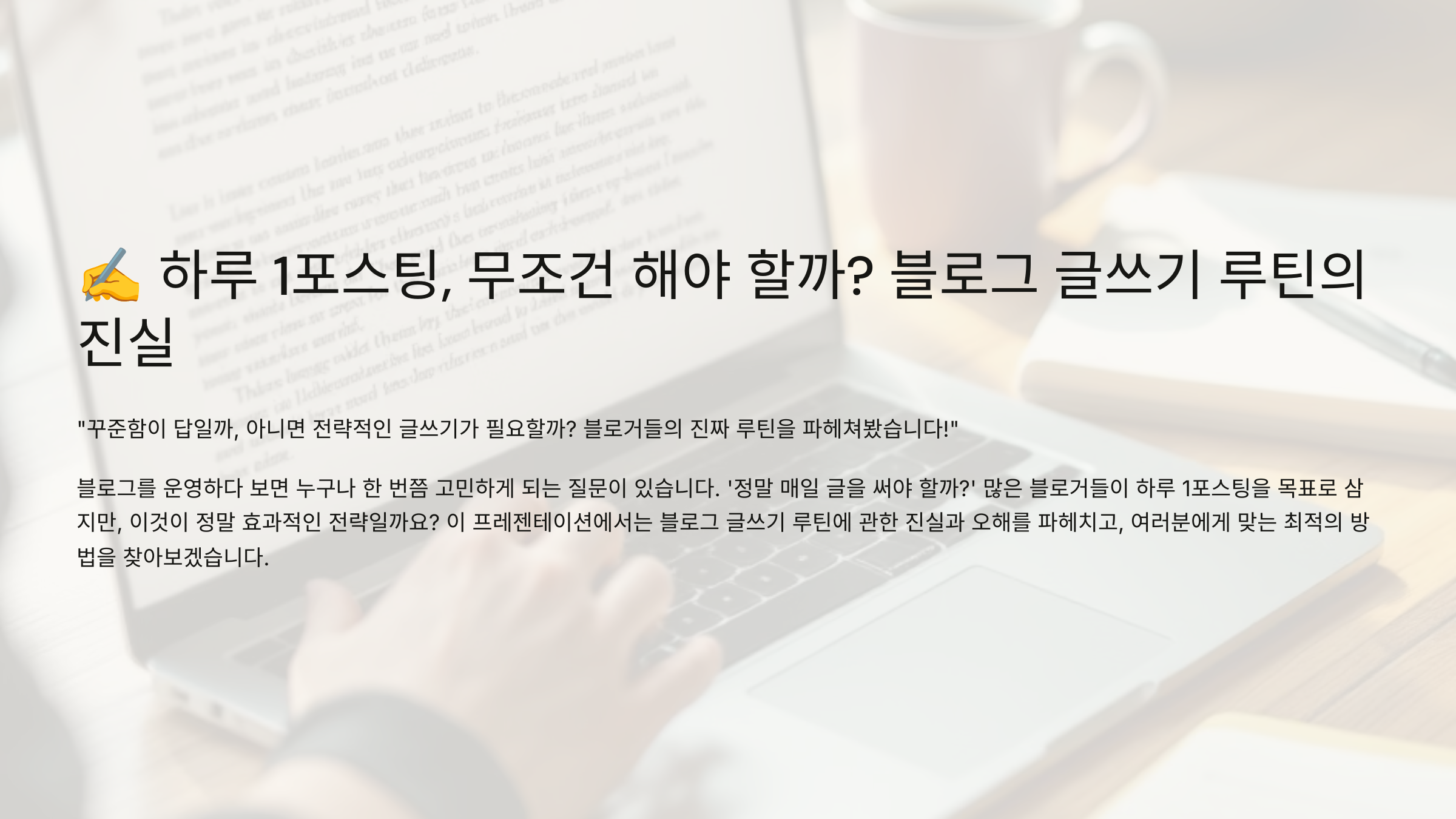 "꾸준함이 답일까, 아니면 전략적인 글쓰기가 필요할까? 블로거들의 진짜 루틴을 파헤쳐봤습니다!"