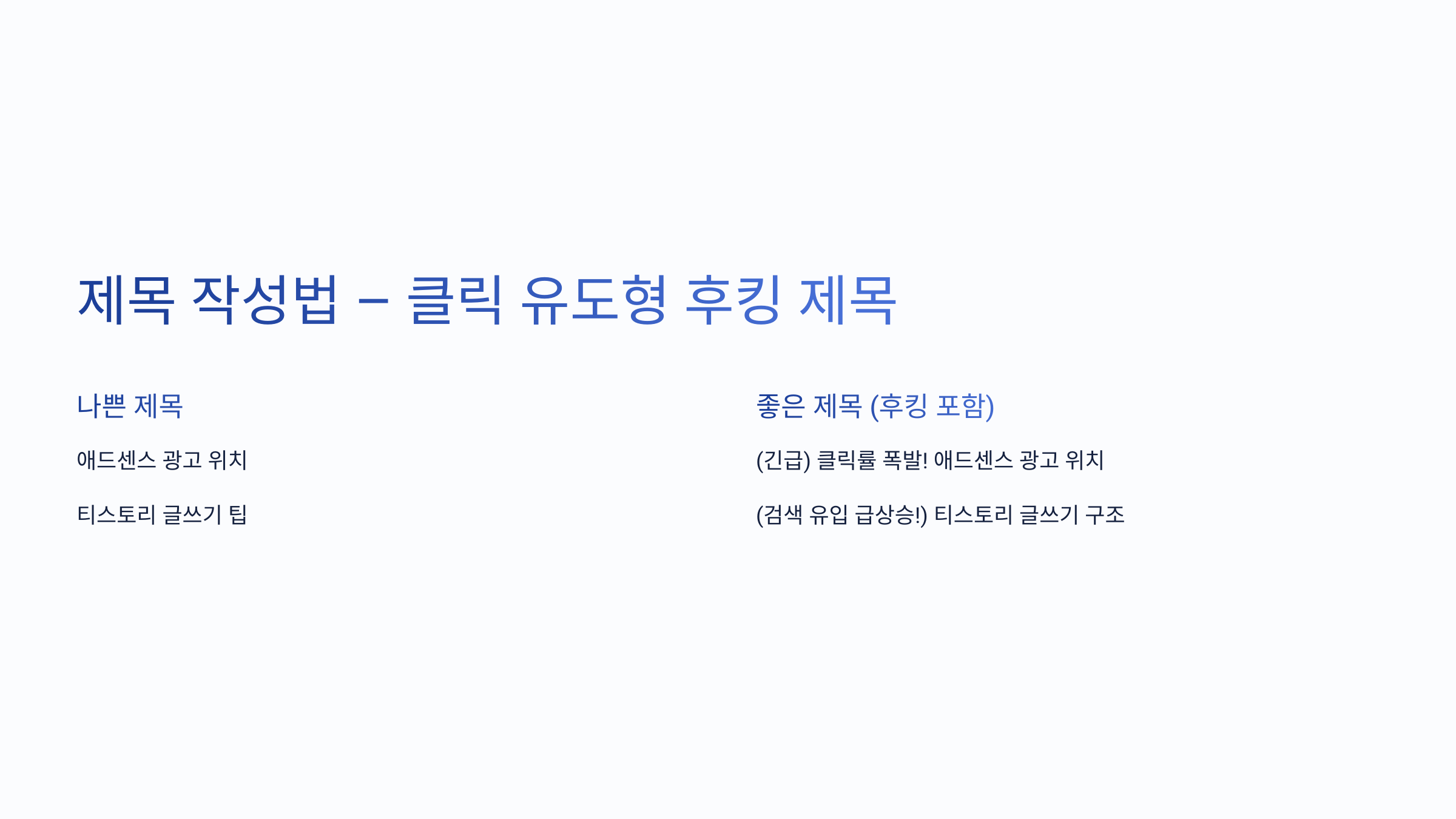 - 제목 작성법 – 클릭 유도형 후킹 제목