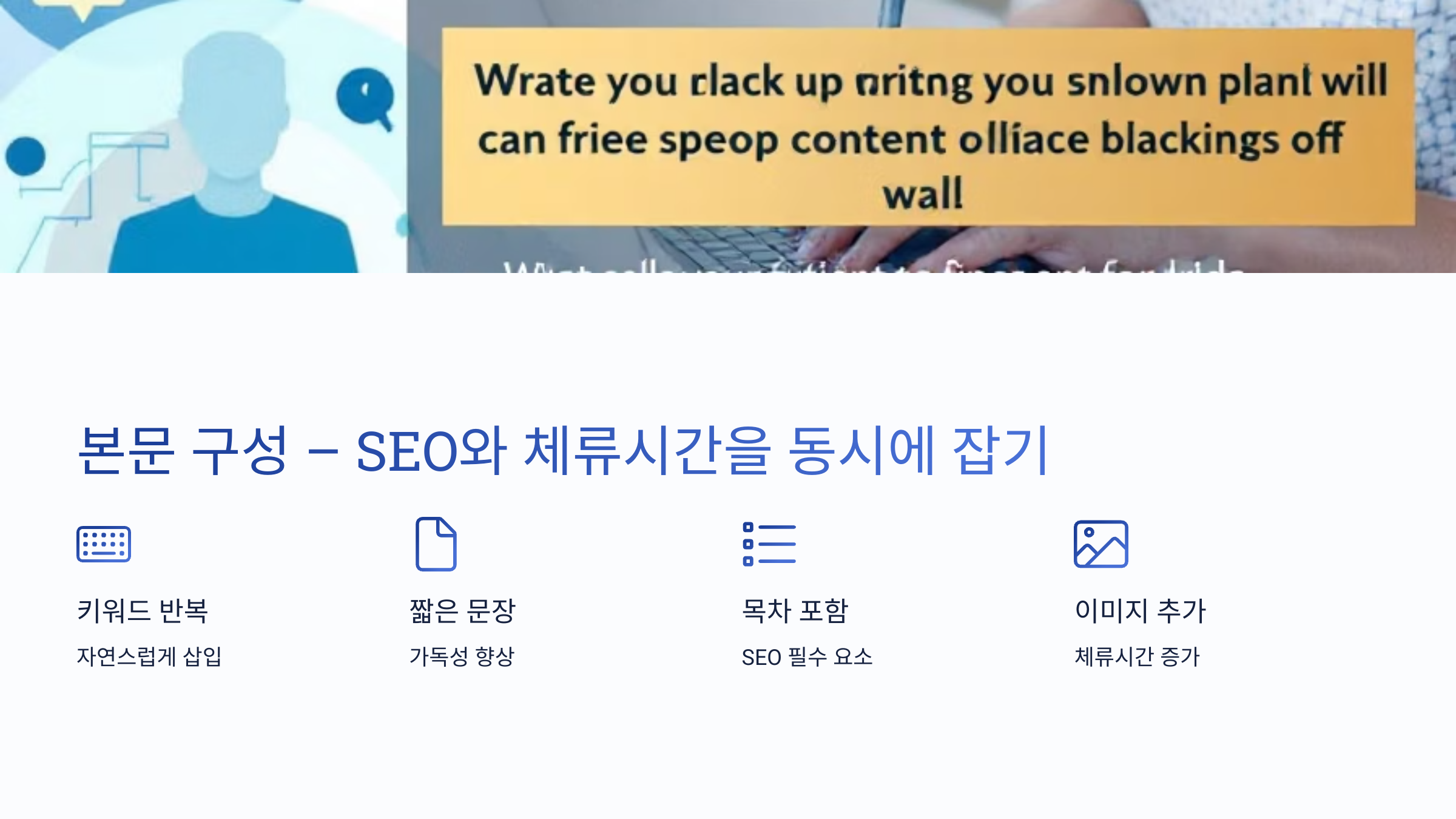 - 본문 구성 – SEO와 체류시간을 동시에 잡기