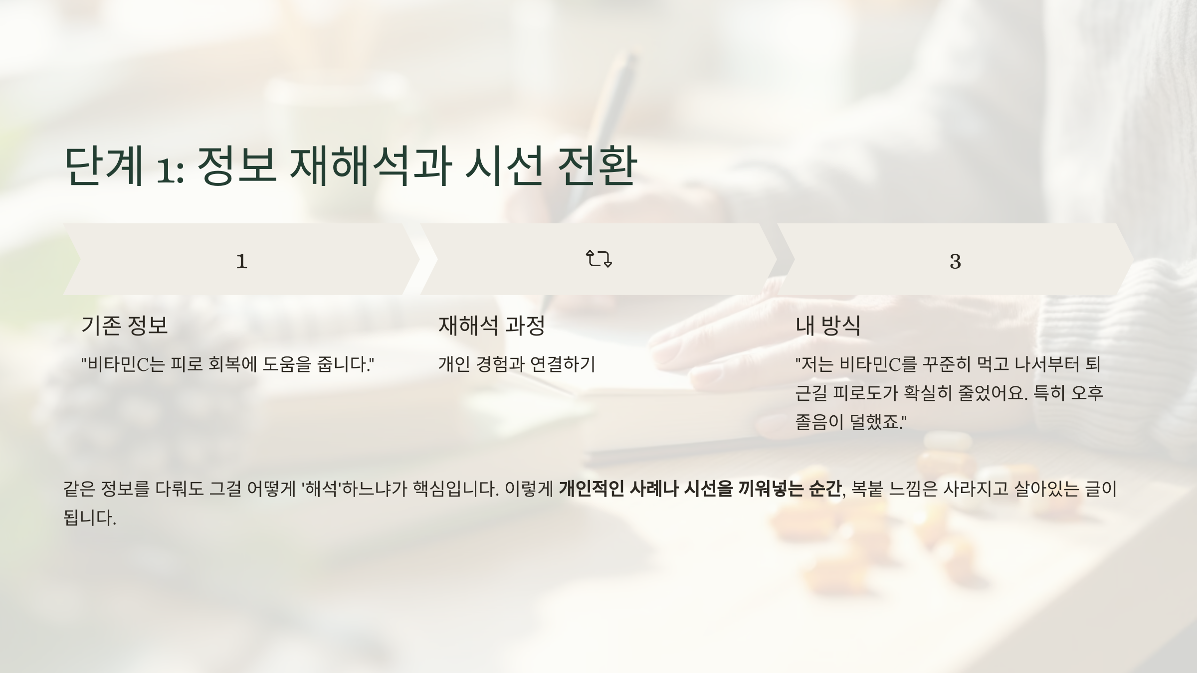 이렇게 개인적인 사례나 시선을 끼워넣는 순간, 복붙 느낌은 사라지고 살아있는 글이 됩니다.